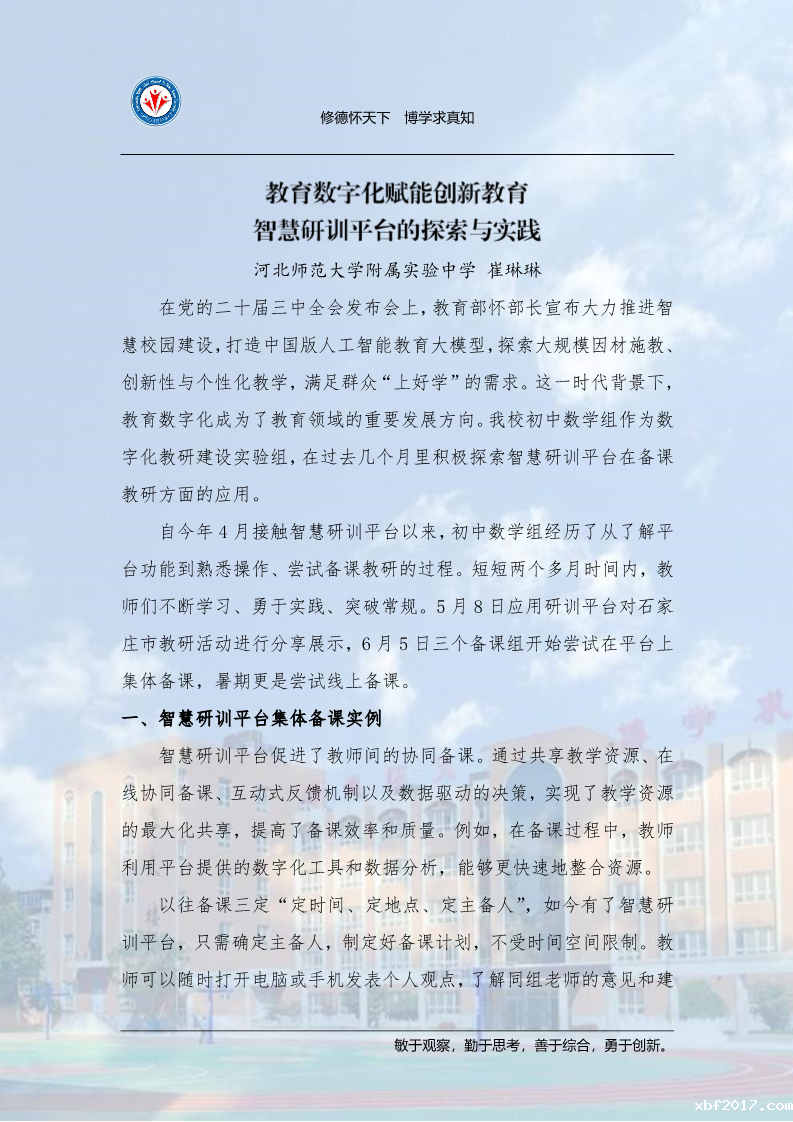 【教学研究】崔琳琳:教育数字化赋能创新教育,智慧研训平台的探索与实践