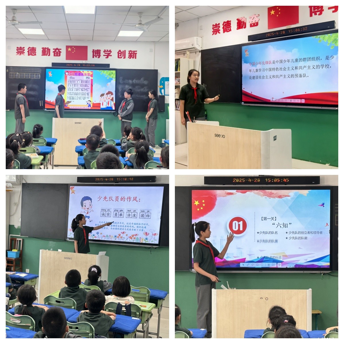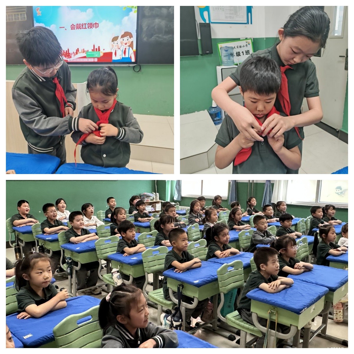 同学们不仅学习了少先队的历史和宗旨,还了解了队徽、队旗、队歌、队礼、队章和红领巾的意义,还对戴红领巾、敬队礼、呼号、唱队歌等每一个环节都进行了细致的指导。同学们听得津津有味,眼中闪烁着对少先队组织的向往与热爱。